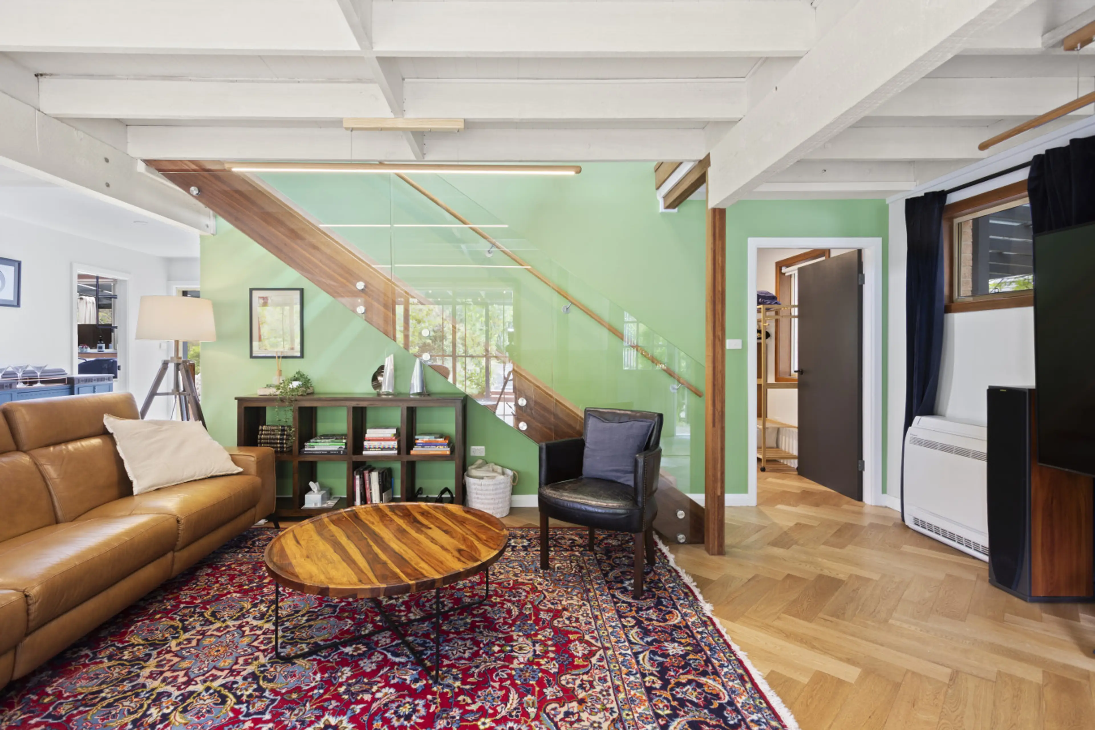 - A-frame retreat in leafy Leura. - Private, peaceful, and full of mountain charm. - Sleeps 6 (3 rooms, and 3 queen beds). - Cosy wood fireplace + reverse-cycle air. - Modern kitchen, bathroom & laundry. - Upstairs lounge/study for work or play. - Balcony with pond & garden views. - Front deck shade...
